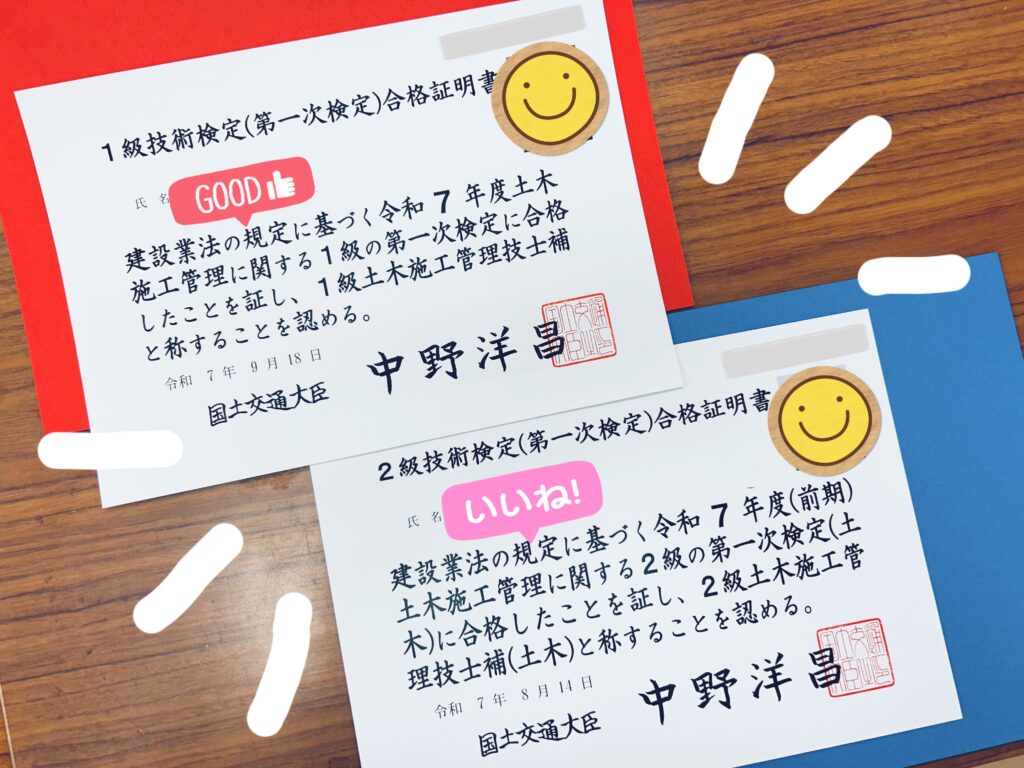 現場での仕事をこなしながら、慣れない勉強をがんばった成果そのものです!